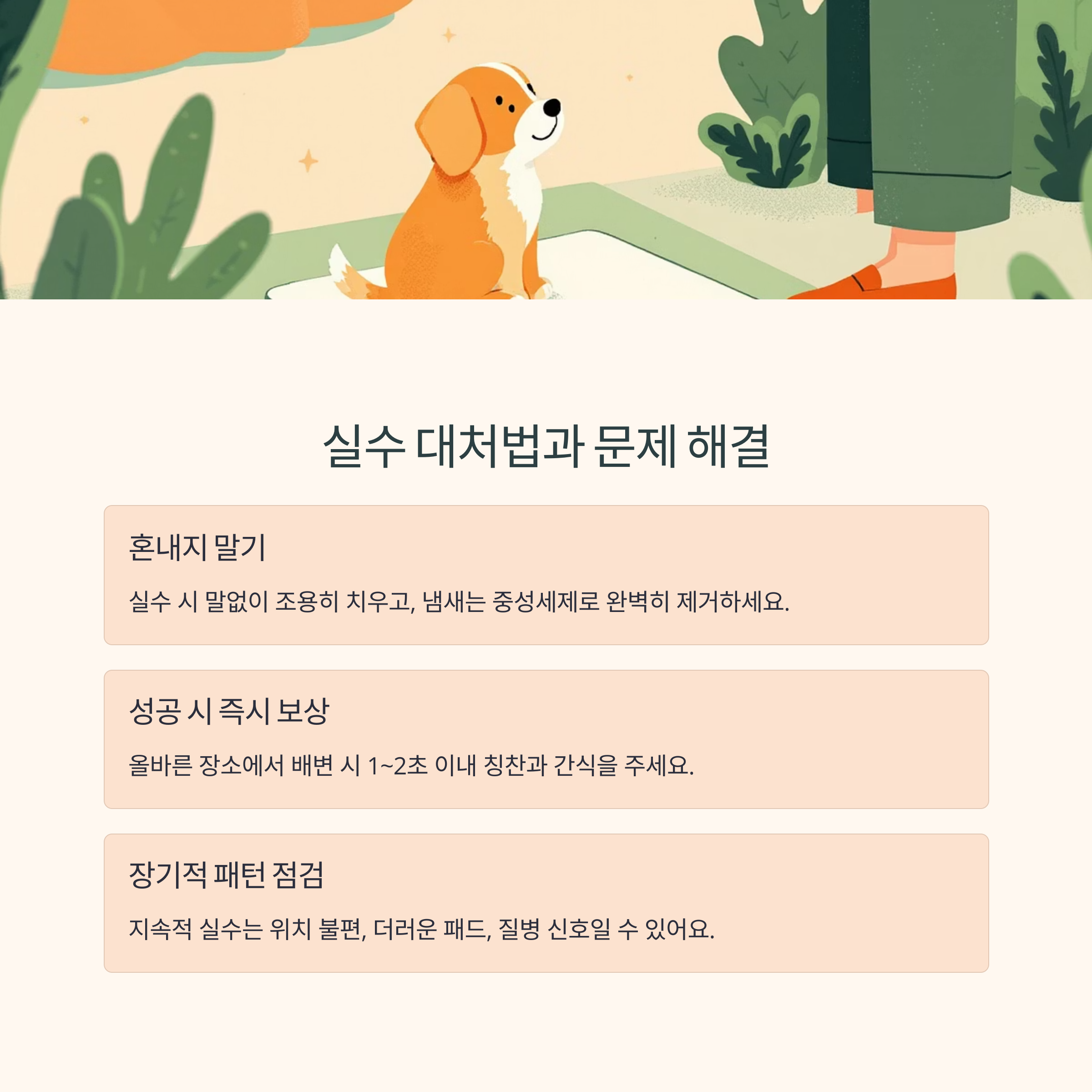 꾸준한 루틴, 즉각적인 보상, 감정 없는 실수 처리, 그리고 무엇보다 ‘기다려주는 마음’이 훈련 성공의 핵심입니다.