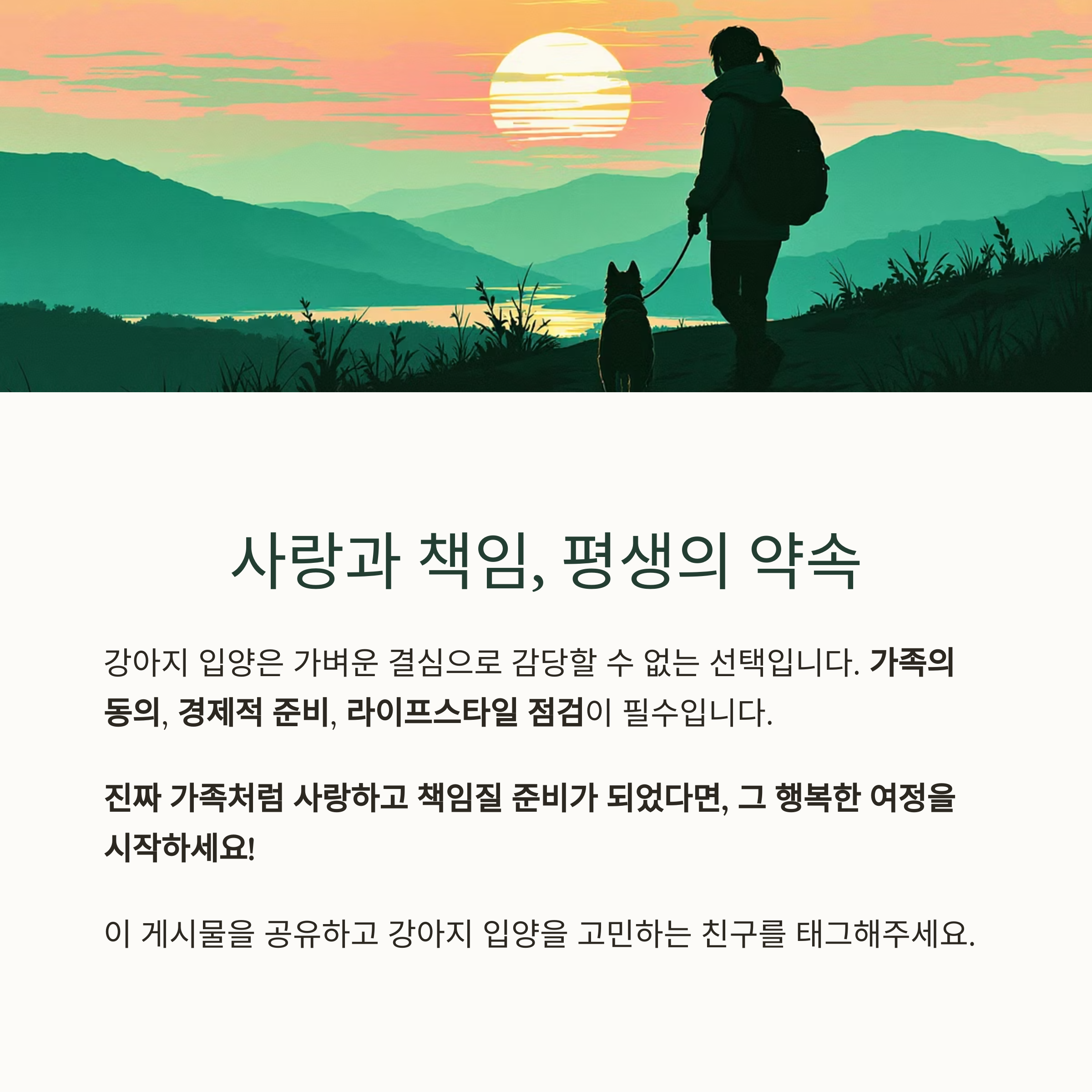 단순히 강아지를 '가족'이라고 부르는 것이 아니라, 진짜 가족처럼 사랑하고 책임질 준비가 되어 있을 때, 비로소 입양할 자격이 생깁니다.