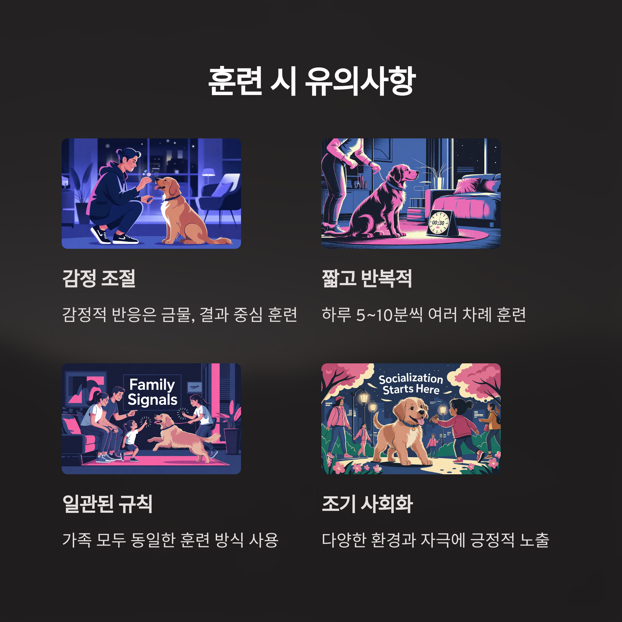 강아지 행동교정은 단기간에 완성되는 훈련이 아니며, ‘보호자의 일관성과 반복’이 가장 중요한 요소입니다. 즉, 누구나 따라할 수 있는 간단하고 실질적인 훈련법을 통해 긍정적인 행동을 습관화시키는 과정이 필요합니다.