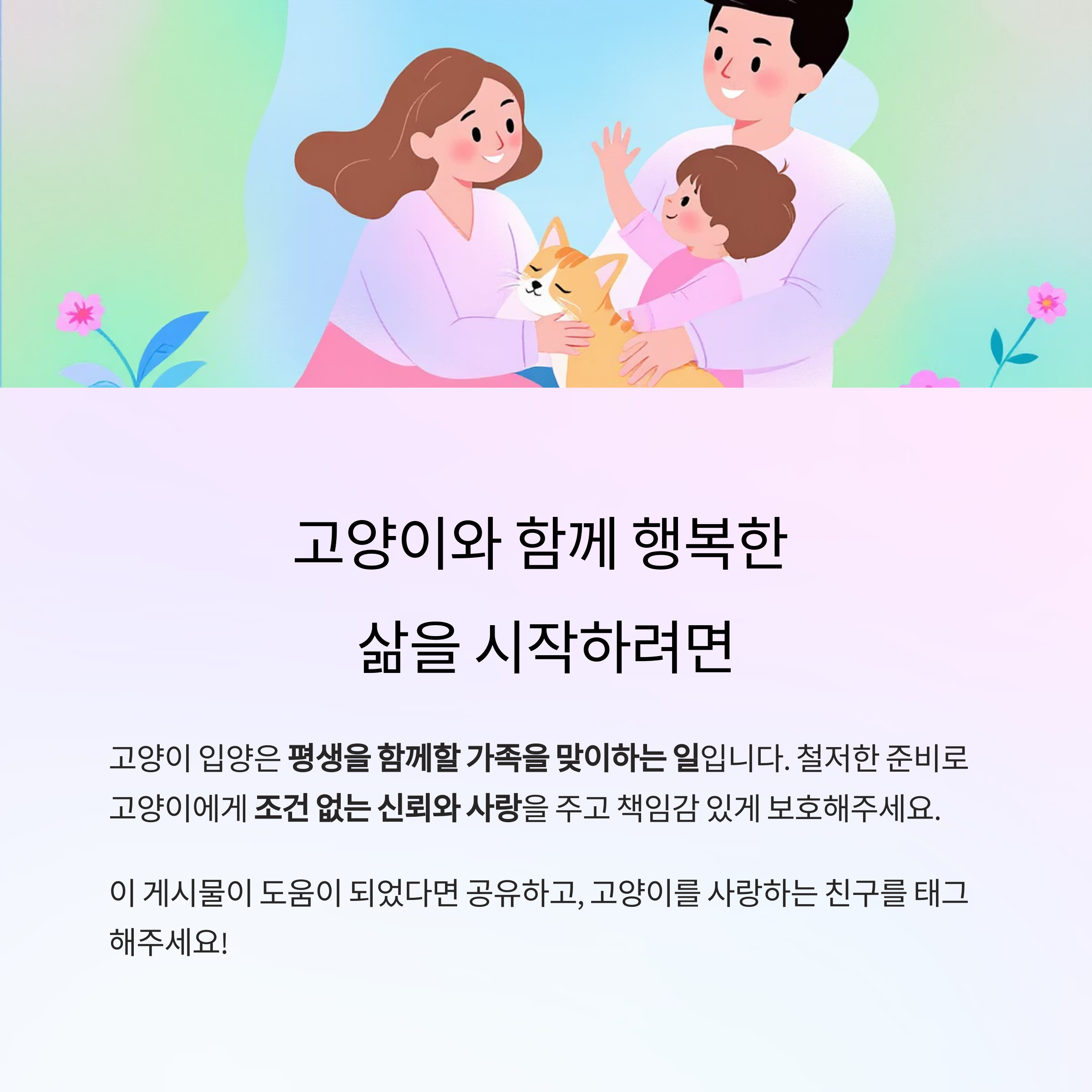 고양이 입양은 단순히 동물을 맞이하는 것이 아니라, 한 가족을 책임지는 준비 과정임을 잊지 마세요.