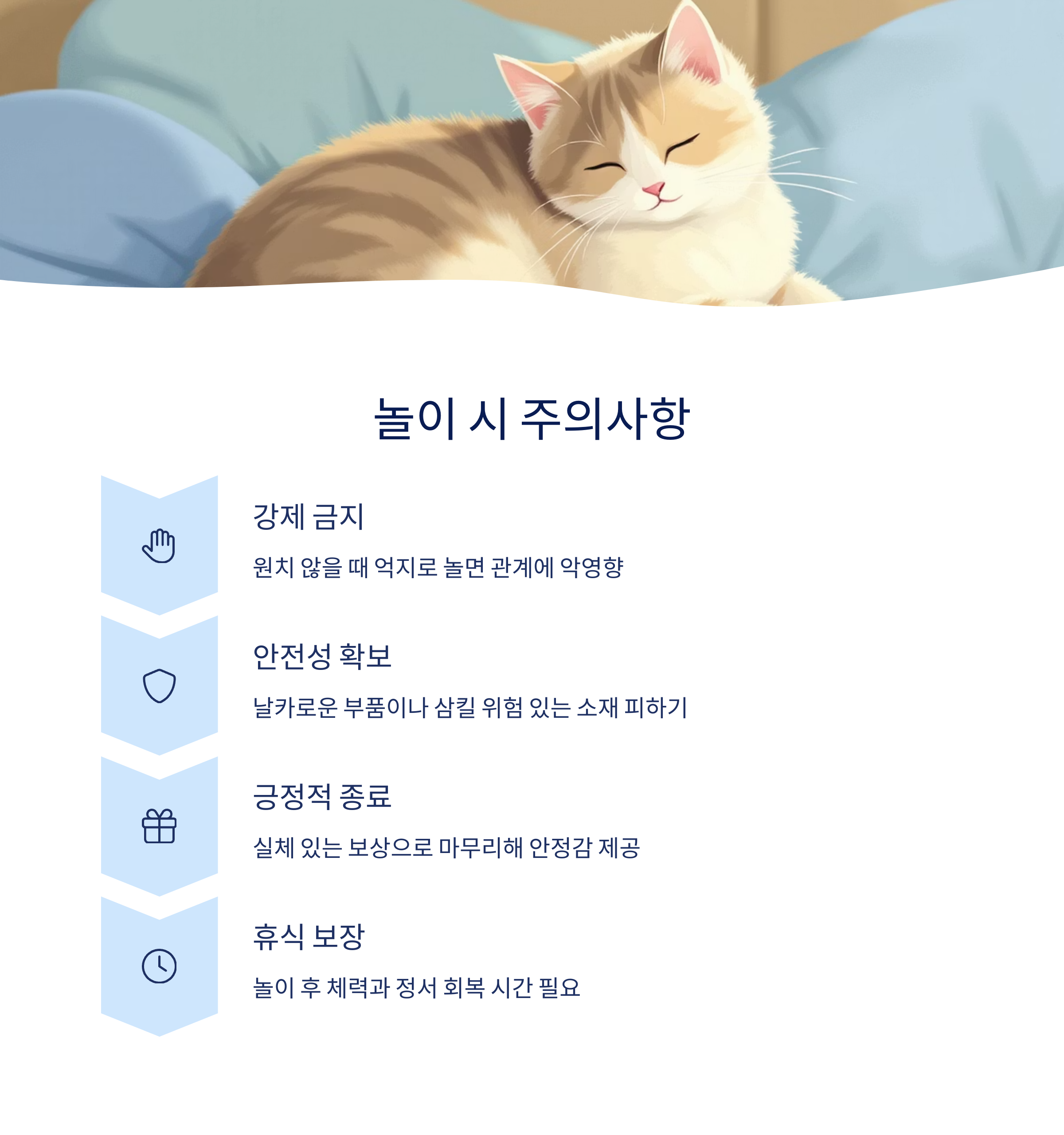 고양이와의 놀이는 단순한 신체활동 이상의 의미를 가집니다. 하지만 놀이가 잘못 진행될 경우 심리적 스트레스나 부상을 유발할 수 있으므로 주의사항을 충분히 숙지해야 합니다.