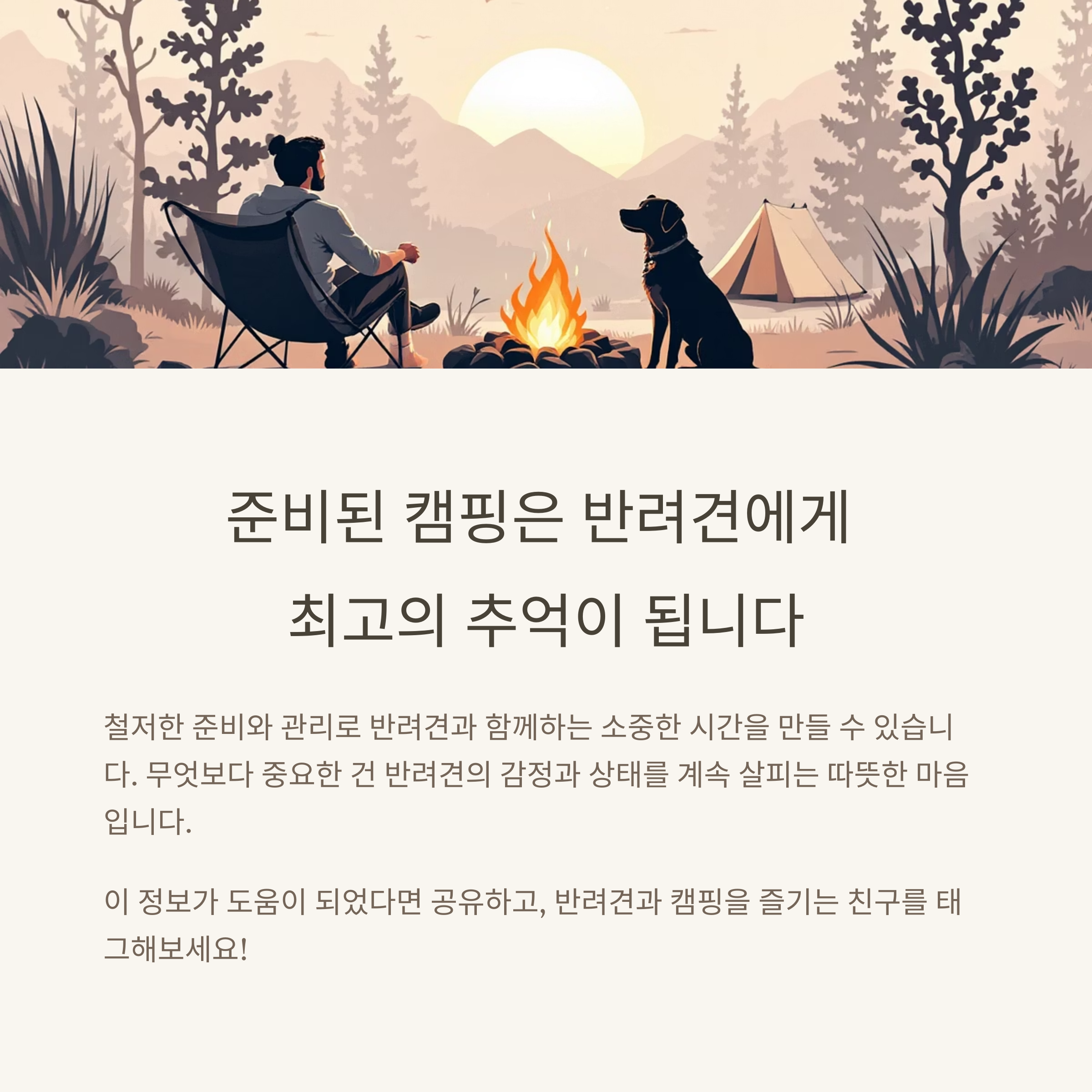 반려견과의 캠핑은 단순한 외출이 아니라, 평생 잊지 못할 소중한 추억을 만드는 시간입니다.