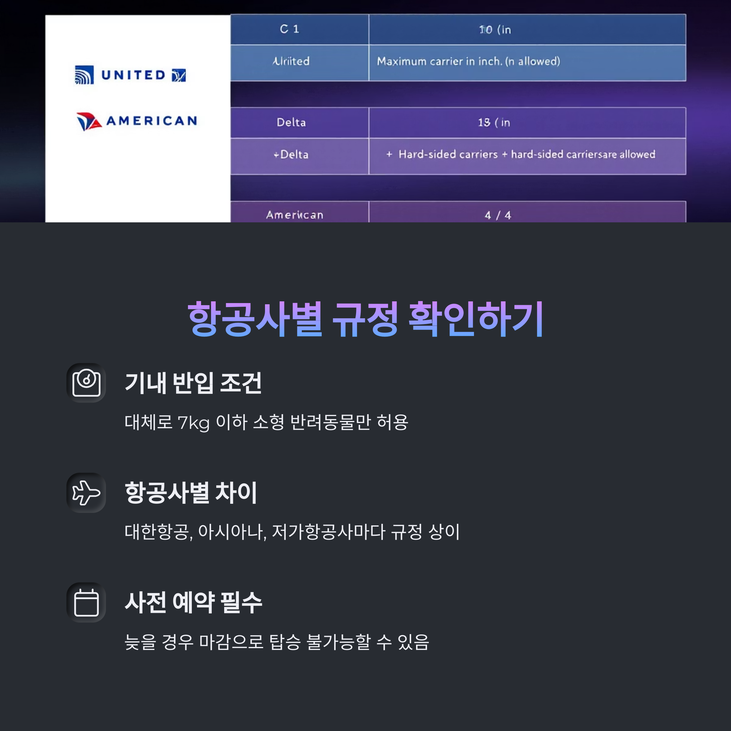 - 외항사: 대부분 반려동물에 대한 별도 규정 존재. 사전 확인 필수
